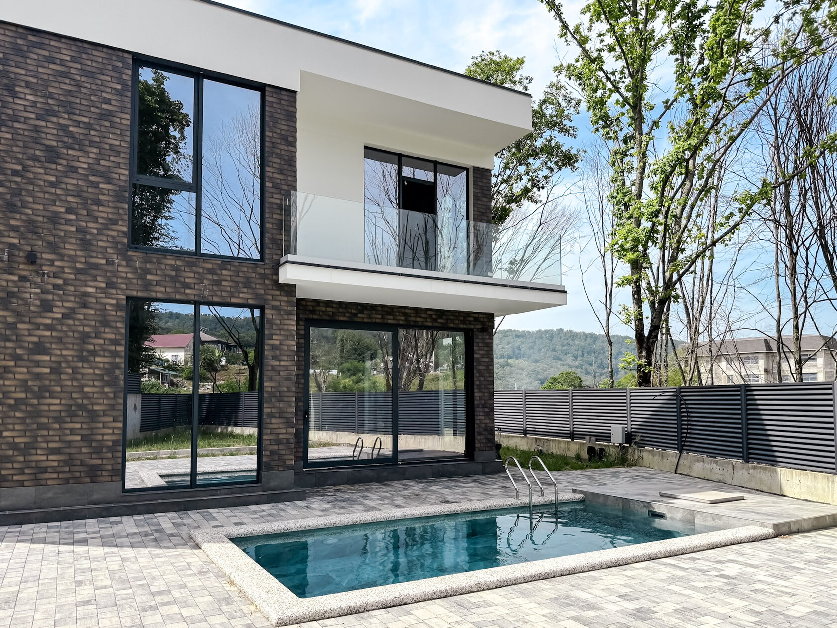 Отделка фасада: клинкерный кирпич и камешковая штукатурка